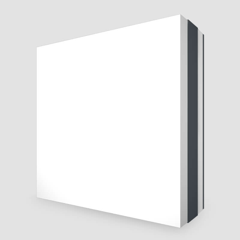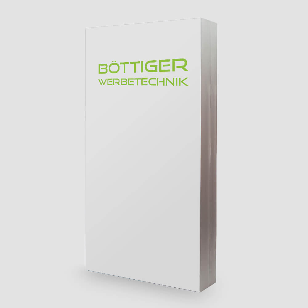 - Robuste Acrylglasfront, standardmäßig in Weiß, auf Wunsch auch farbig erhältlich