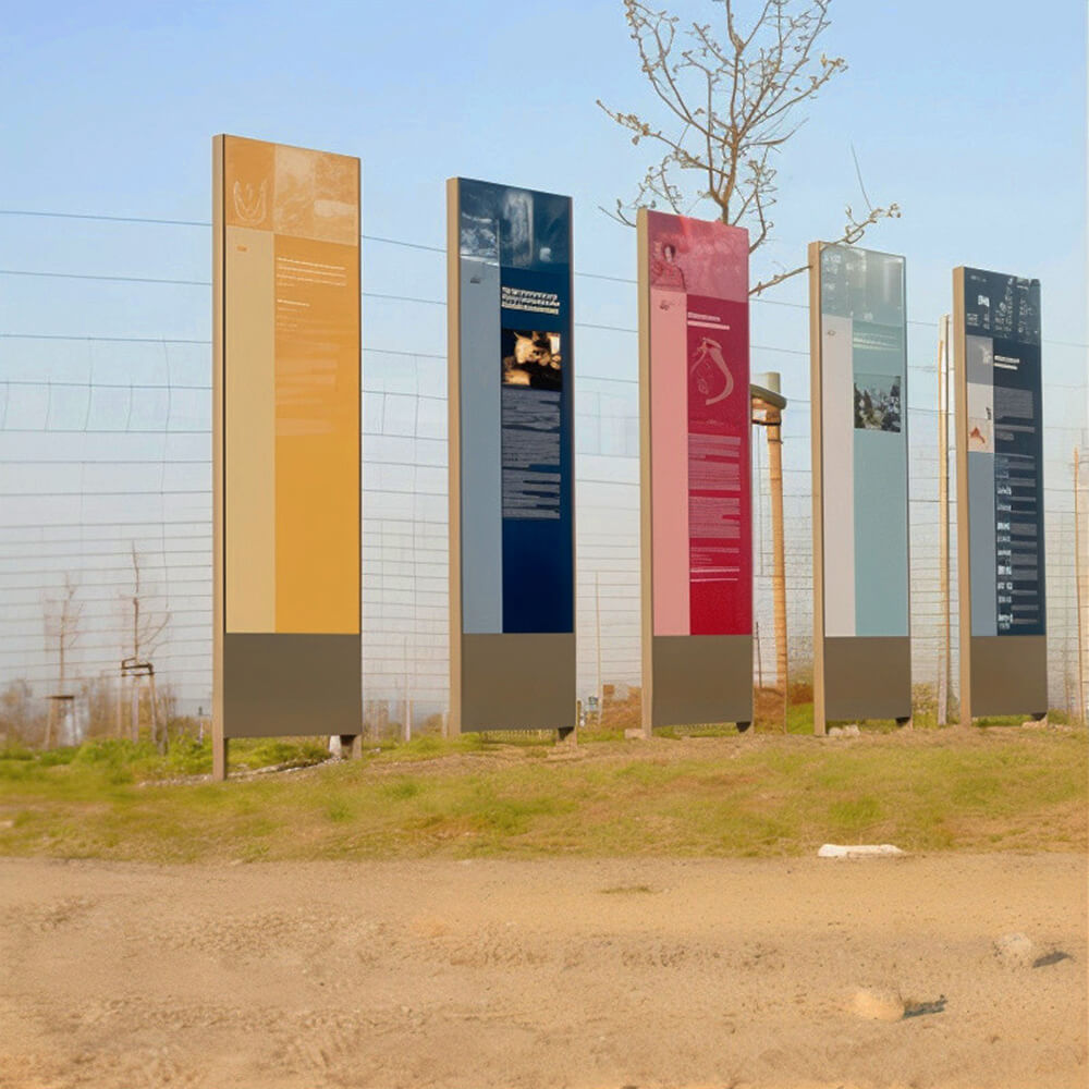 - Stelen: Bis zu 5 Meter hohe Säulen, ideal für Logos, Beschriftungen oder Wegweisungen.