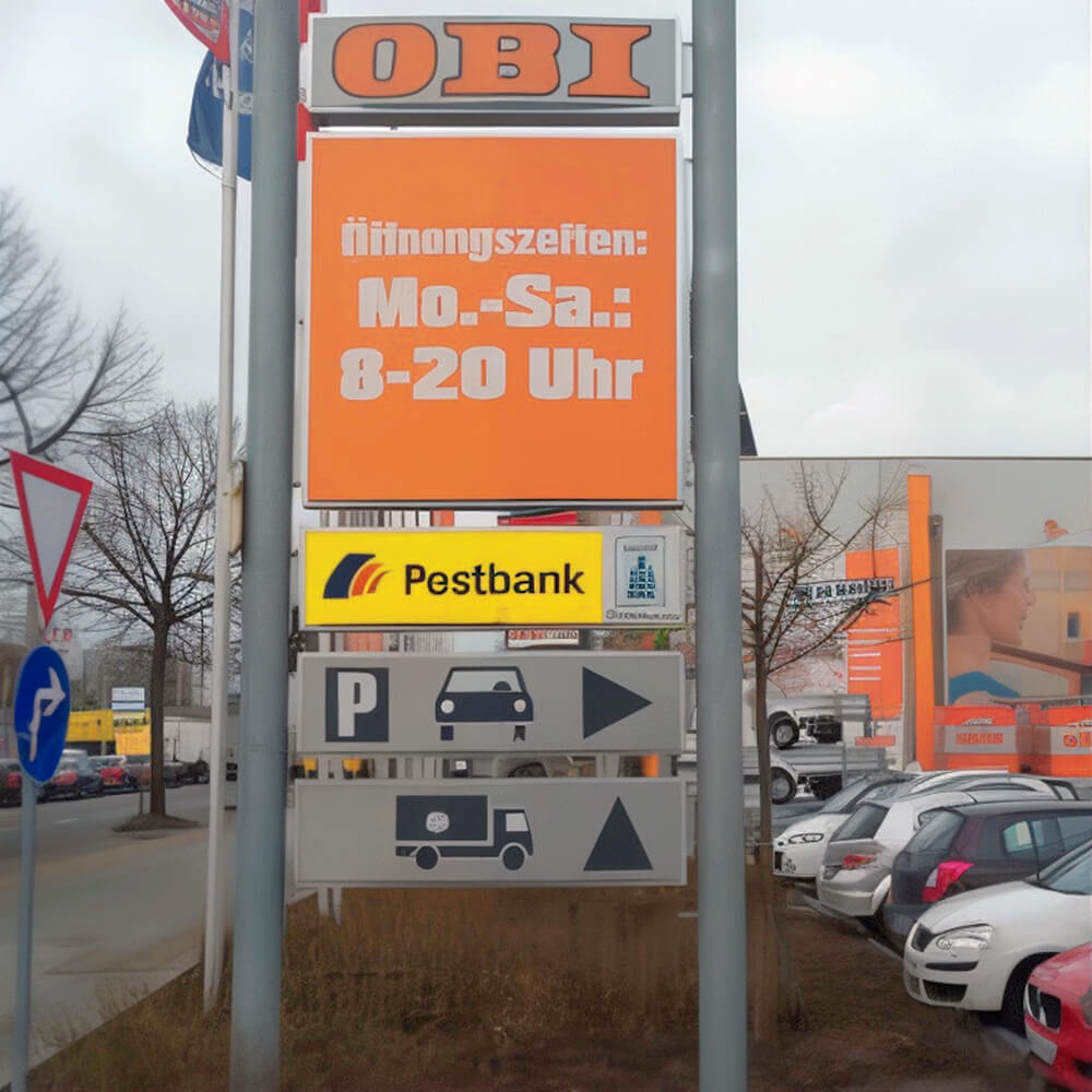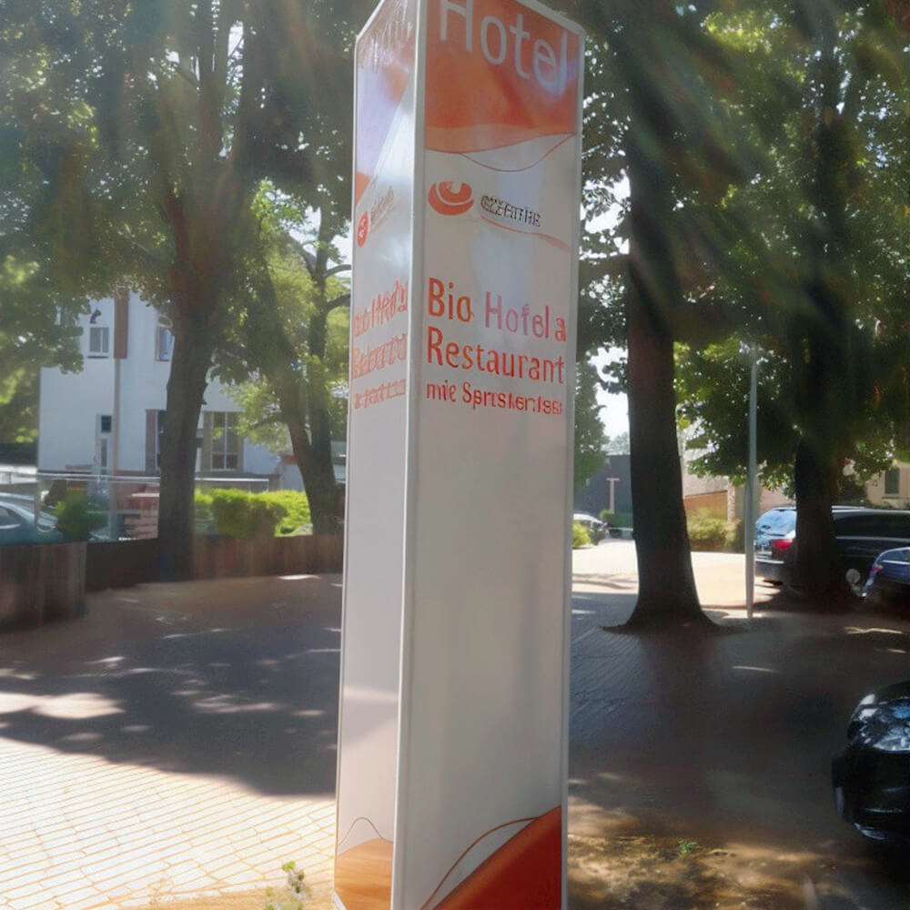 Pylone und Stelen sind freistehende Werbeanlagen, die im Außenbereich für maximale Aufmerksamkeit sorgen.